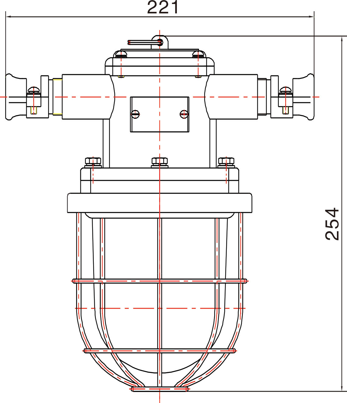 13W熒光燈由上蓋、上殼體、下殼體、防爆透明玻璃罩、金屬保護網等組成,上蓋與上殼體用M4螺釘連接,下殼體用M6螺釘與上殼體相連。防爆透明玻璃罩、護罩用M4螺釘固定在下殼體上。上殼體外有M4外接地螺釘、銘牌等,上殼體內有接線板、M4內接地螺釘、直口式壓接燈頭。下殼內有密封墊、防爆透明玻璃罩及金屬保護網,燈頭與電源采用直口式壓接方式。上蓋、上殼體、下殼體、防爆透明玻璃罩之間均有符合規定的隔爆接合面隔爆。 |